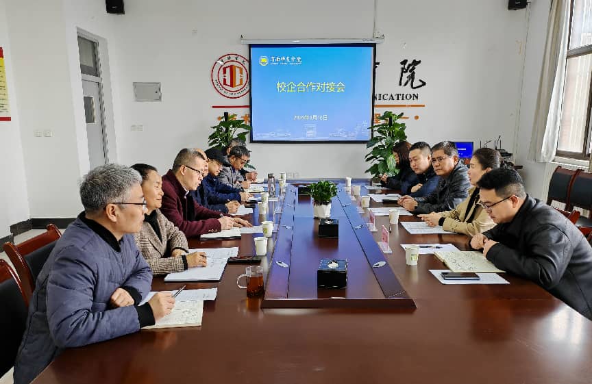 3月16日,学校在富平校区教学楼105会议室召开校企合作对接会。渭南市农业投资集团有限公司副总经理王晓军,陕西省茶文化研究会副会长、渭南市茶文化协会会长盛爱玲,渭南市农投食品产业科技有限公司董事长王军峰,副总经理罗龙,渭南农投集团富平君迁子茶生物科技有限公司销售部负责人刘欢等企业代表,与传媒学院、美术学院、经济与管理学院主要负责人围绕校企协同育人、产学研融合发展等议题交流探讨,共商合作事宜。副校长卢爱刚出席会议并讲话。