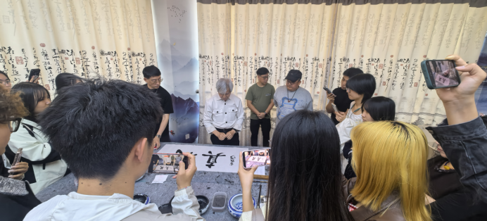 讲座中,黄柱河先生系统阐述了书法艺术的重要性及其与中国文化的深层关联。他指出,书法是中华文明的重要象征,书写与文化传承密不可分。书法艺术的精髓在于整体和谐,书法创作是真、善、美的有机统一,写好书法是热爱民族文化的具体体现。黄先生通过个人书法作品的展示,并结合实践指出书法创作的基本方法与审美原则,以全新的视角阐释对书法艺术本体语言与精神内核的理解,启发同学们将书法所蕴含的秩序感、节奏感与意境美融入专业学习与科研实践,提升艺术创作与人文素养。